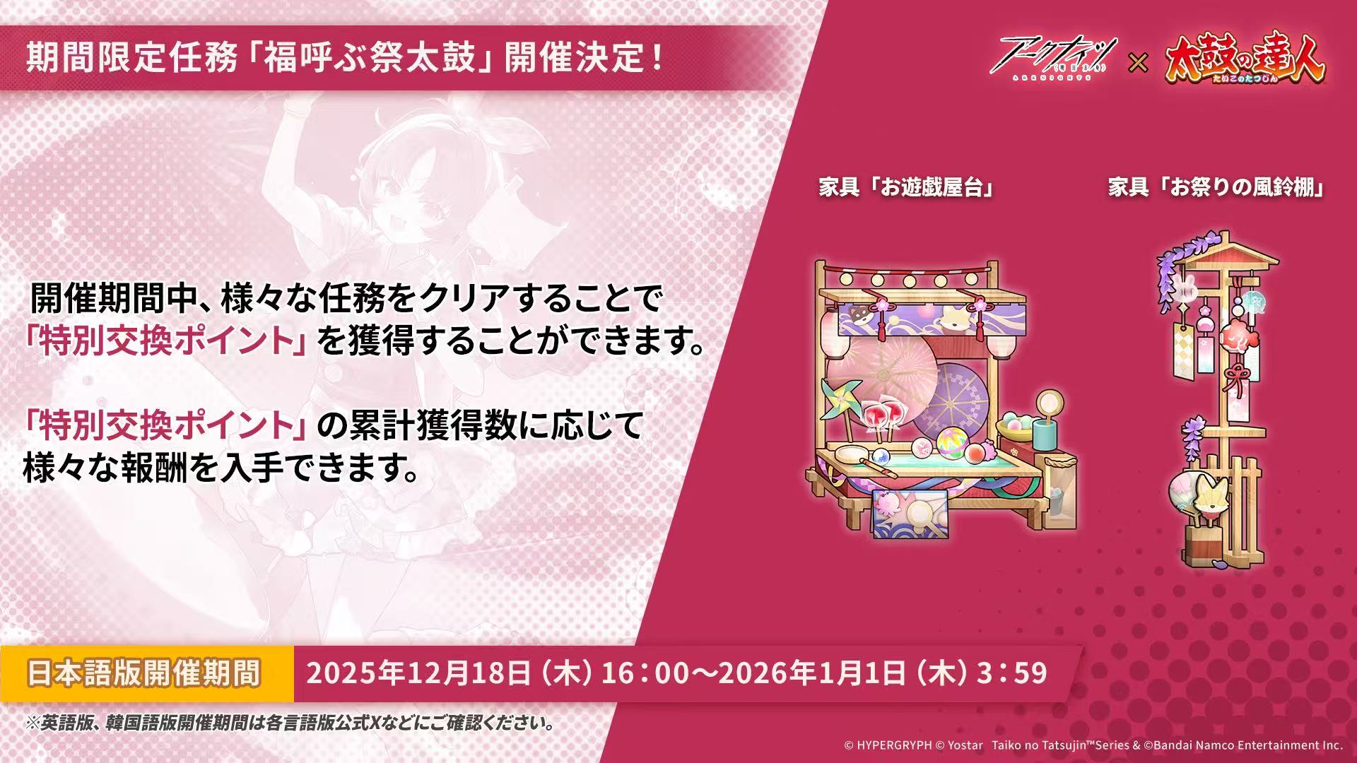 ※英語版・韓国版のゲーム内開催期間は、各言語版公式Xなどでご確認ください。