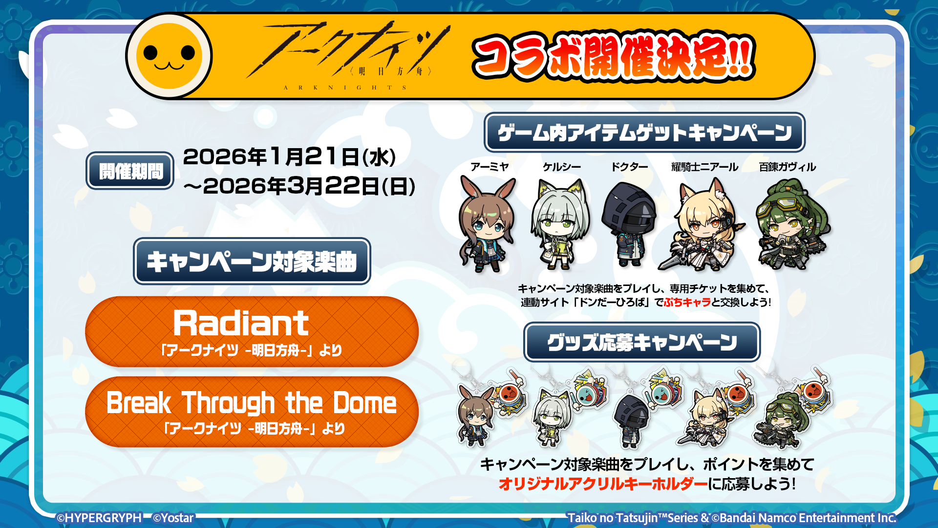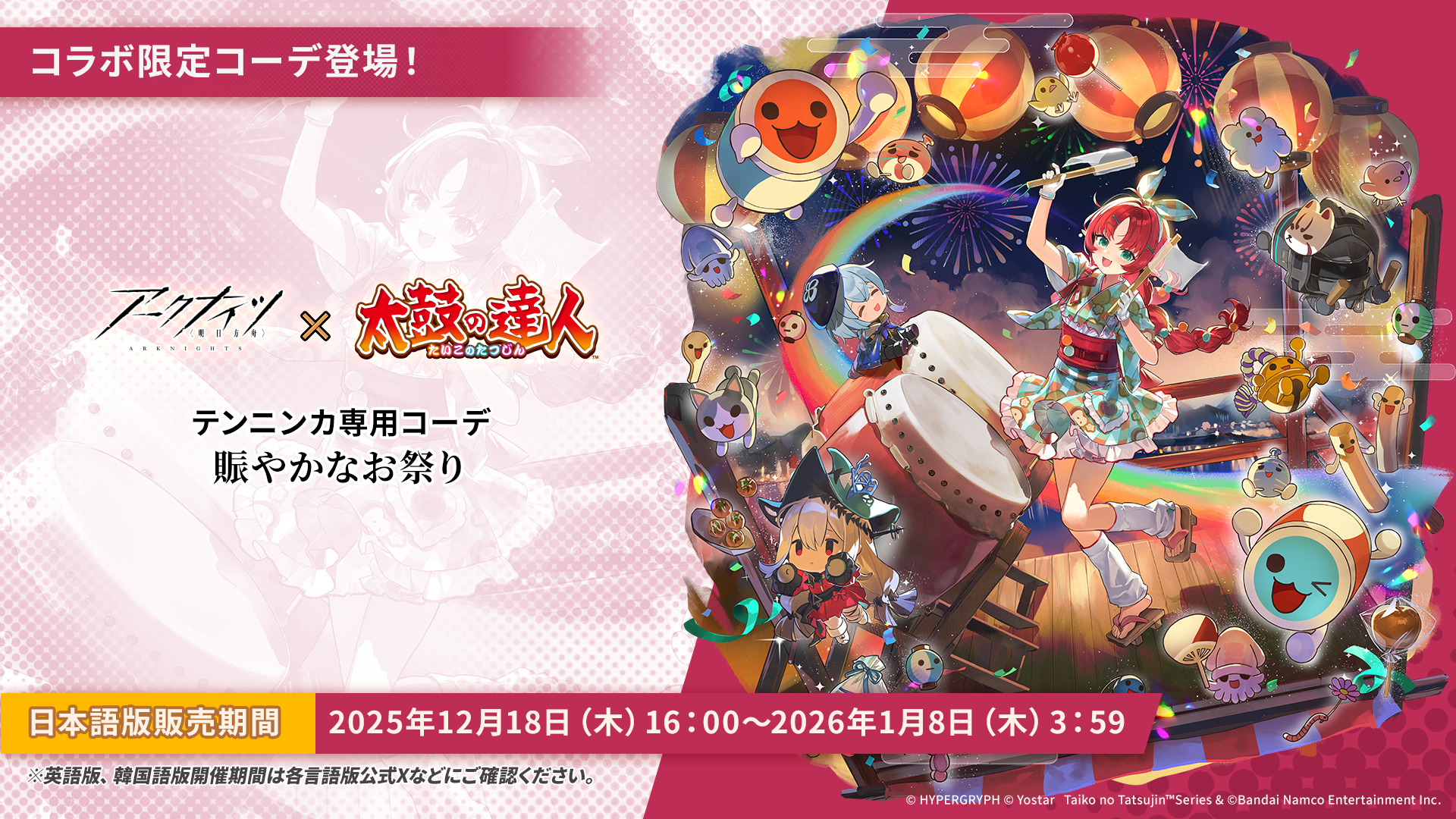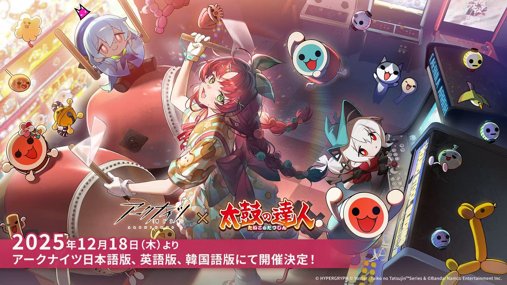 アークナイツさんでも、太鼓の達人とのコラボキャンペーンが2025年12月18日(木)より、日本語版・英語版・韓国版で開催されます!